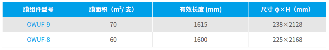 注:灌封膠材質(zhì)為環(huán)氧樹(shù)脂;膜管材質(zhì)為UPVC。